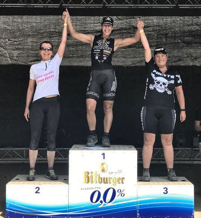 Schnell merkte ich das mein Vorsprung zu der hinter mir platzierten größer wurde…. also kann Frau sich eine Pause gönnen…dann setzte die vor mir platzierte wegen Schmerzen aus…. meine Chance… drauf aufs Rad… schnell schnell… zwei Runden gedreht.. Schit sie fährt wieder… schnell noch eine Runde…. Schit sie fährt immer noch, sie hat die Schmerzen besiegt… ja ich habe mich gefreut das sie keine schmerzten mehr ertragen muss….ABER….ich war bis auf 6 Runden an sie ran… wusste aber genau , wenn sie jetzt wieder fährt… keine Chance für mich sie einzuholen….